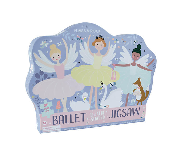 This jigsaw has 80 pieces, contained in a stunning ballet dancer themed shaped box.