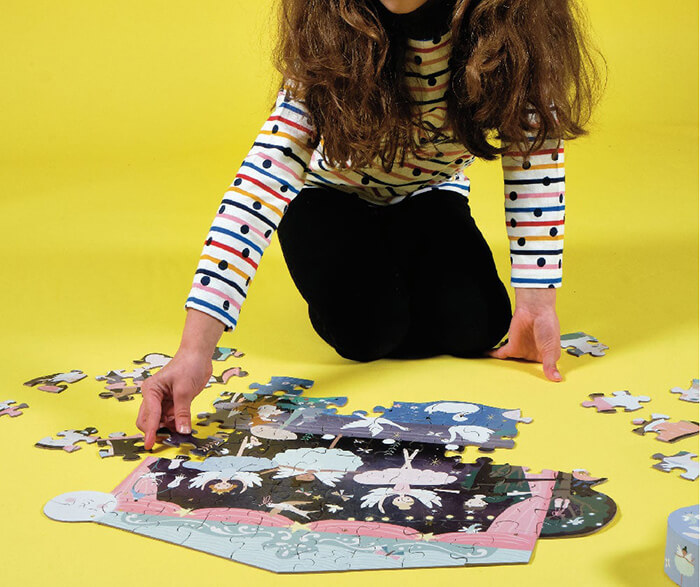 A fun-filled jigsaw packed full of fairy ballet dancers, beautiful swans and enchanted forest friends. Where will your imagination take you on an adventure building a jigsaw that is actually shaped like a magical theatre!
