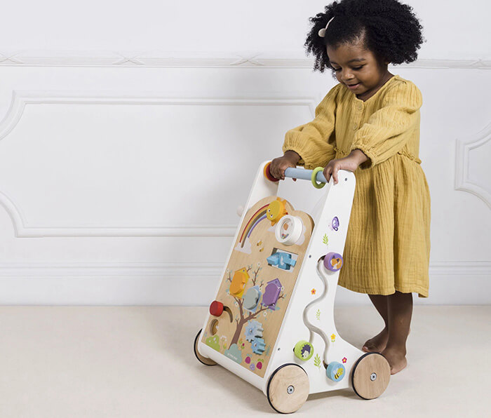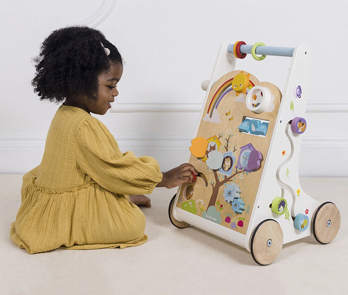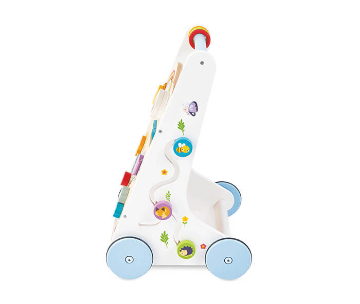 This traditional wooden activity walker is a wonderful development toy, ideal for toddlers to explore the world around, helping to build confidence at a time of first steps and beyond.