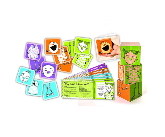 This set includes 3 wooden blocks, 12 cards and a 16 page booklet which suggests activities, poems, games and songs to use alongside the blocks and build the characters. Set 2 explores the emotions excited, calm, anxious and jealous.