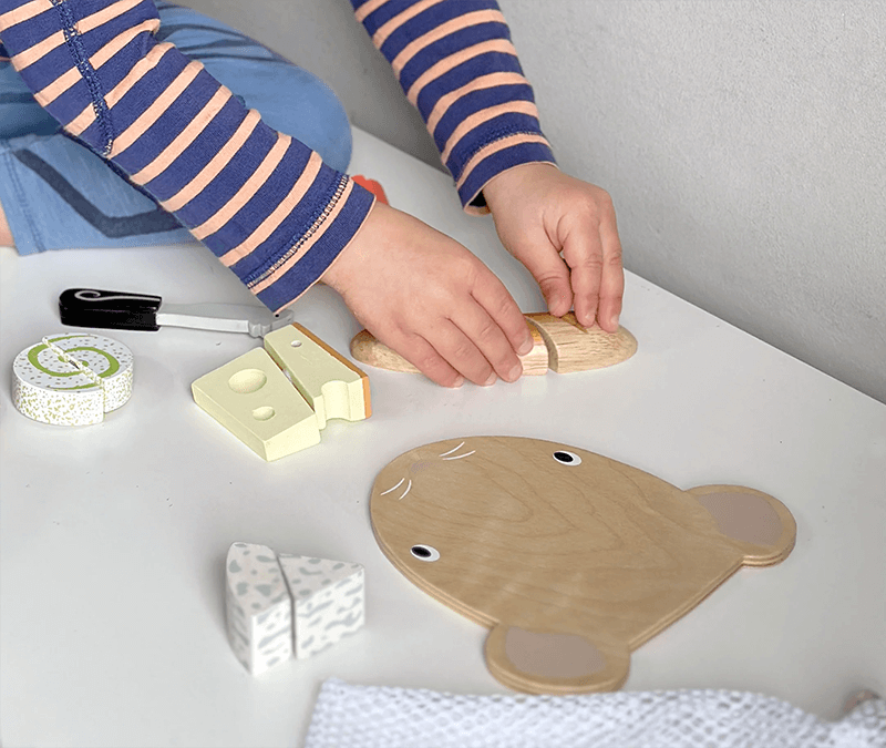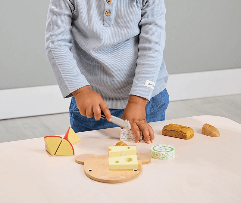Great for pretend play, playing at restaurants, social and language development and learning some real life skills. Try talking about how cheese is made as you play – what are the ingredients and what would you eat it with?