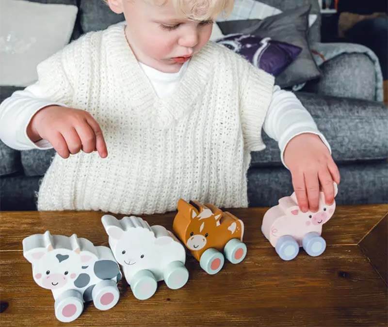 There are more push along toys in this range including a Sheep, a Pony, a Highland Cow, a Pig and Nessie.