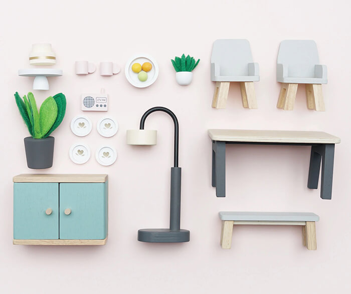 All the accessories pictured are included. We have a wide selection of gorgeous furniture sets, accessories and dolls from the Le Toy Van Daisylane collection, perfectly scaled to all the Daisylane doll’s houses.