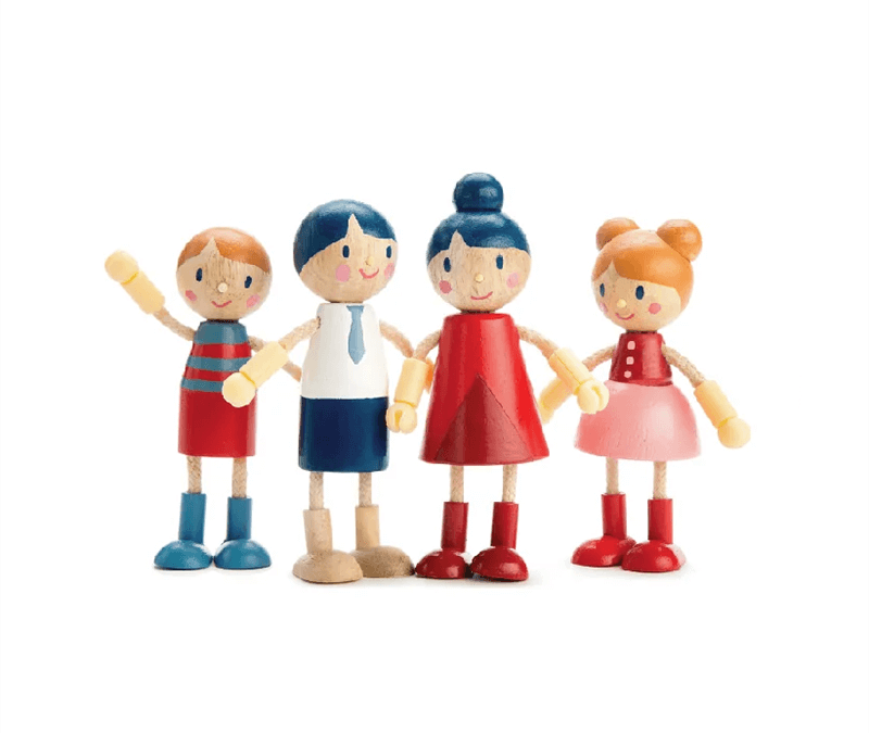 The wooden family consists of 4 family members – Mum, Dad, little girl and little boy.