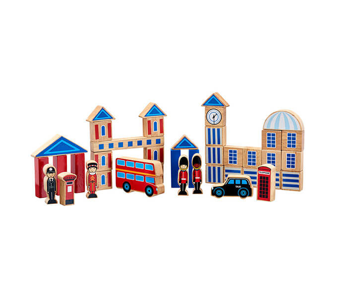 A colourful set of 40 wooden building blocks, perfect for little hands, your little one can create the traditional London skyline. This set of London building blocks is a fantastic addition to any little ones toy collection. Creative minds will enjoy building popular London tourist sights including Buckingham Palace, London Tower Bridge, Big Ben plus many more!