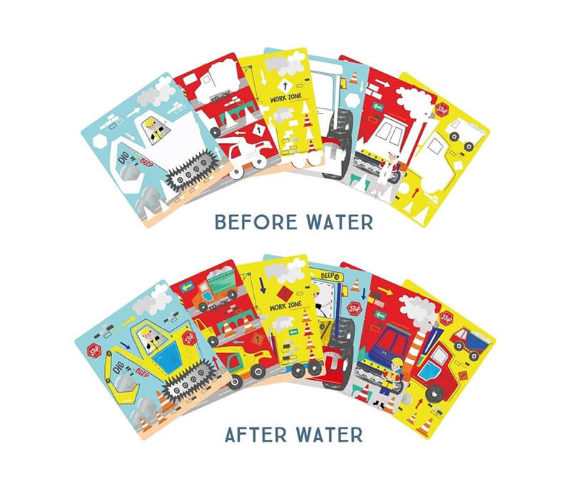 The pads are reusable over and over again, so the colourful diggers, trucks, builders and more can be revealed each time as if newly colouring in the designs. Once the session had finished, close the pad and secure the water pen in the elastic closure to keep it nice and safe. This portable pad is perfect for taking out and about – and remember there’s no worry about any mess!