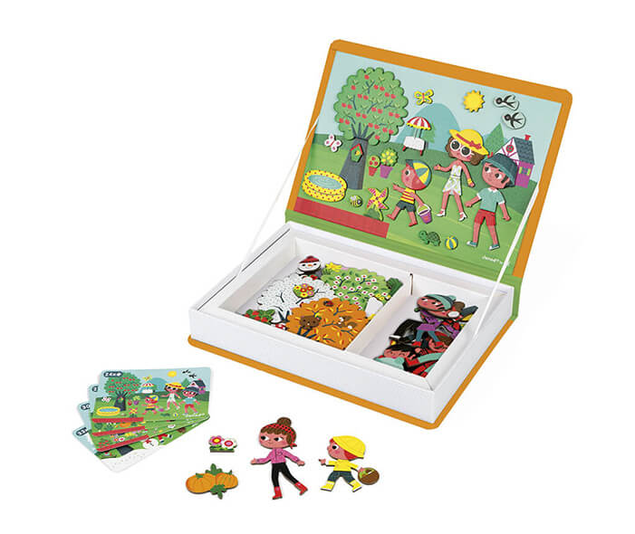 Book-sized Magneti’books are the ideal toy for taking anywhere. This four seasons magnetic game belongs to a large family of Magneti’books including dinosaurs, fairy tales, crazy faces and jobs.