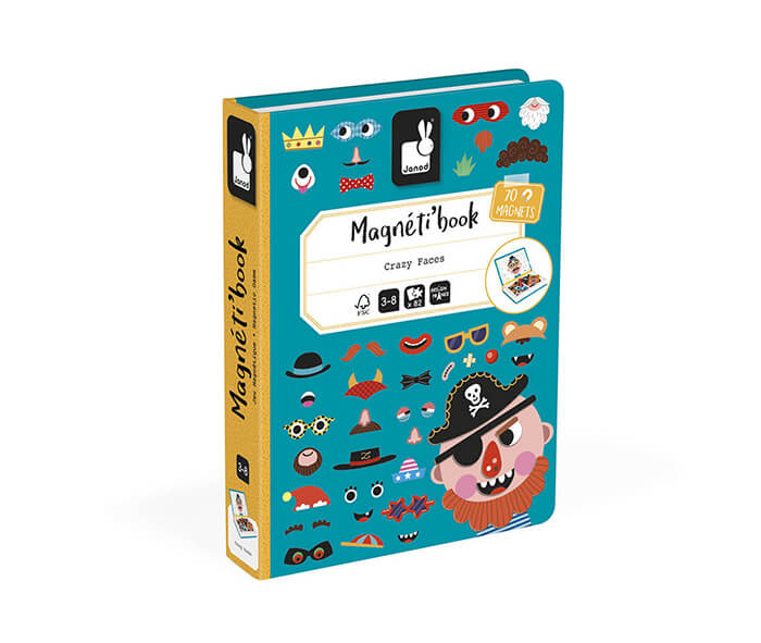 Book-sized Magneti’books are the ideal toy for taking anywhere. This boy’s crazy faces magnetic game belongs to a large family of Magneti’books including history, fairy tales, crazy faces and jobs.