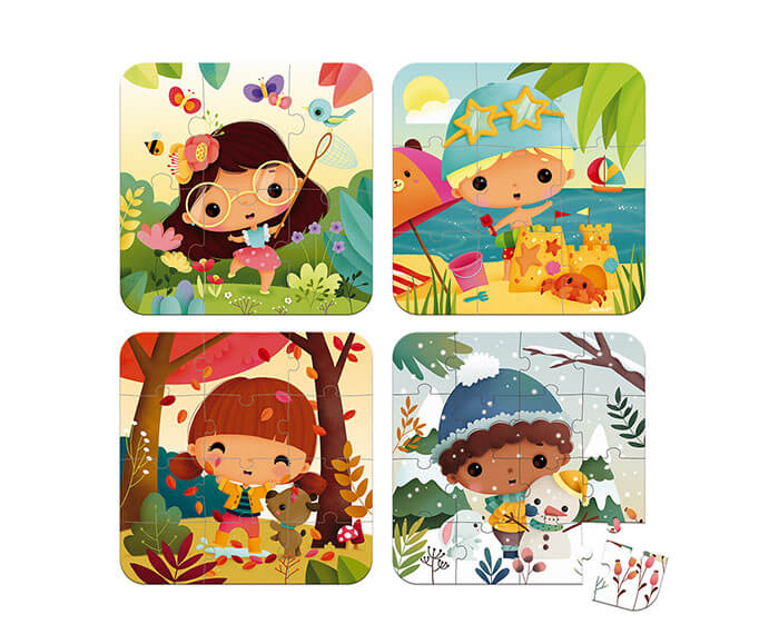 This is a simpler version of classic Sudoku for little ones. There’s a total of 30 different game challenges. Each game card is divided into 4 coloured areas and it’s up to you to deduce the buttons to play for the spaces on the game card. Remember to satisfy 4 different animals in each block, each row and each column.