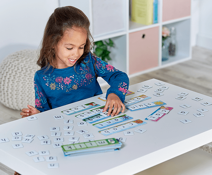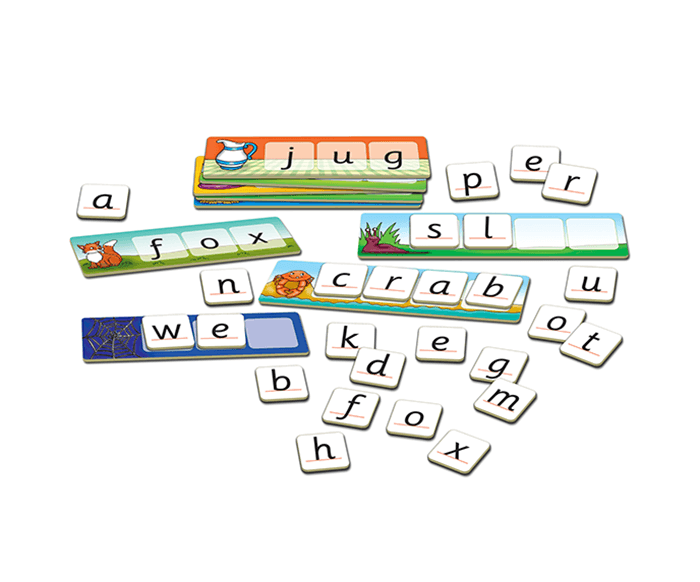 To play – players must match the letter cards to the letters shown on their board in the correct order to build a word. This first version, is a simple matching game, which is a great way to introduce letter shapes and sounds. As little ones get more familiar with the letter sounds, they will progress to reading the words out loud. The more challenging version of the game, has players using the blank side of the boards and use the letter cards to build the word shown in the picture. These must be place in the correct order.