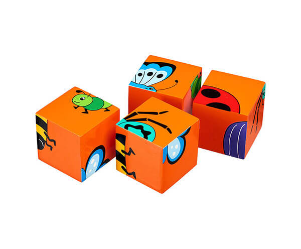 This traditional wooden block puzzle toy has a fun minibeast designs. All 4 blocks have been decorated with 1 part of a colourful insect on all 6 sides. Little ones will love rotating the cubes to complete the minibeast pictures.