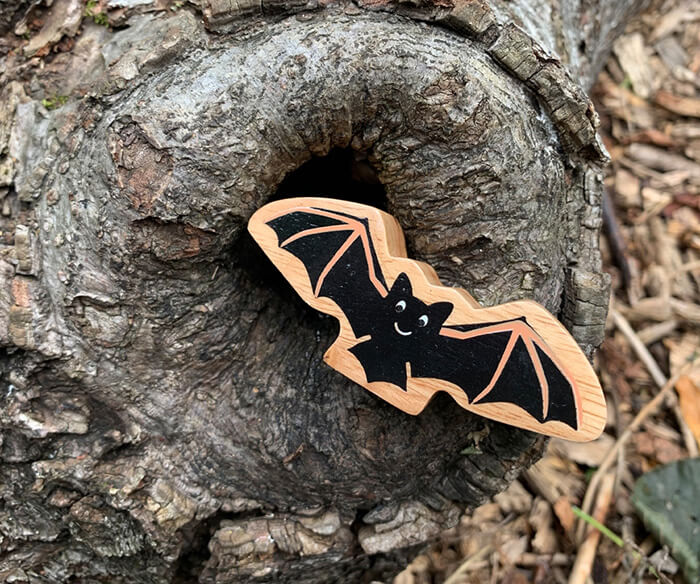 This colourful natural wooden bat figure has a black design with a beautiful wood grain edge – each one is unique! Add this bat to any little ones toy collection for hours of play at a pocket money price.