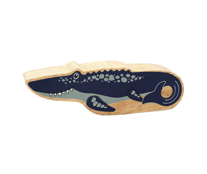 This colourful natural wooden Mosasaurus figure has a blue design with a beautiful wood grain edge – each one is unique! Add this world animal to any little ones toy collection for hours of play at a pocket money price.