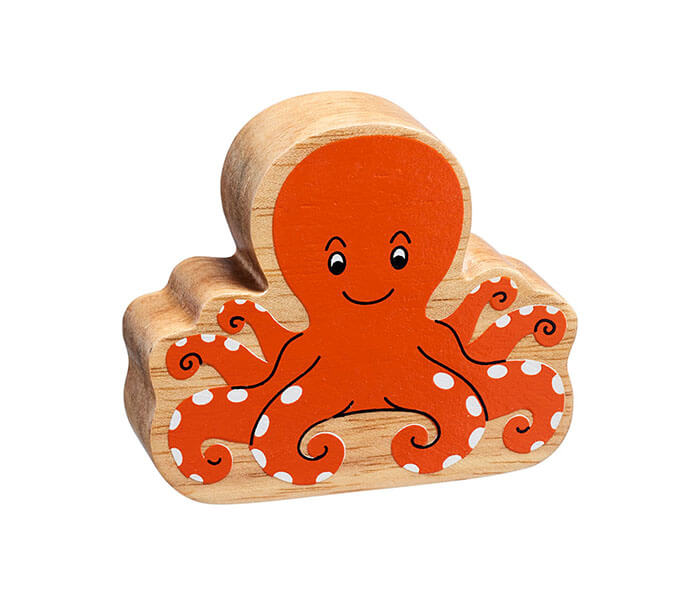 This colourful natural wooden octopus figure has a orange design with a beautiful wood grain edge – each one is unique! Add this sea creature to any little ones toy collection for hours of play at a pocket money price.