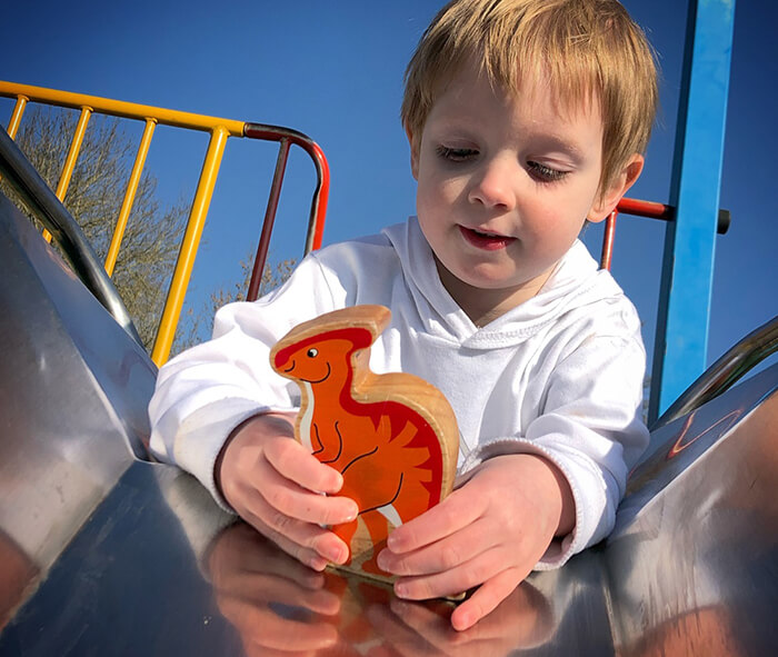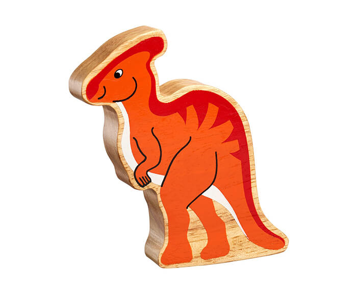 This colourful natural wooden parasaurolophus figure has an orange design with a beautiful wood grain edge – each one is unique! Add this world animal to any little ones toy collection for hours of play at a pocket money price.