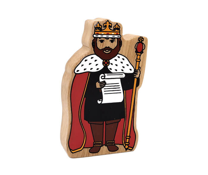 This colourful natural wooden king figure, complete with crown and cape, has a red design with a beautiful wood grain edge – each one is unique! Add this king to any little ones toy collection for hours of play at a pocket money price.