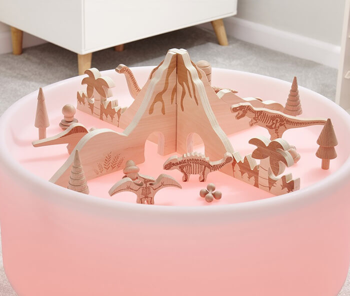 The Jurassic-themed dividers, simply slot together to create a 4-way imaginative play scene. Lasered with tactile trees, ferns and lava, the dividers are an ideal resource for children to create small world play scenes. They are designed to be used inside the Sensory Mood table or on the floor.