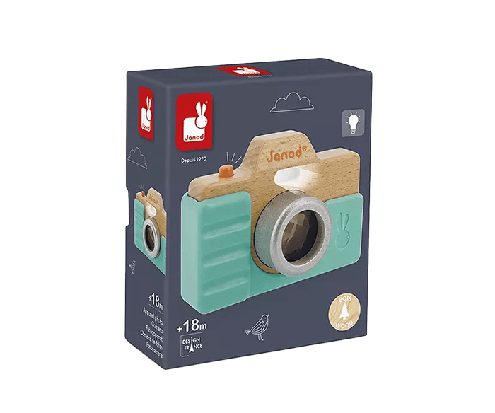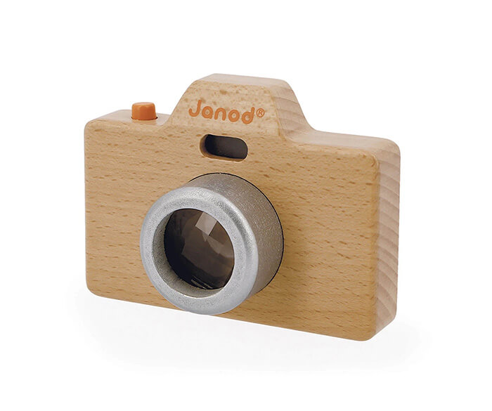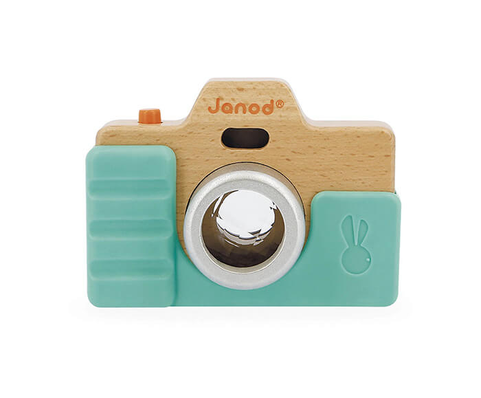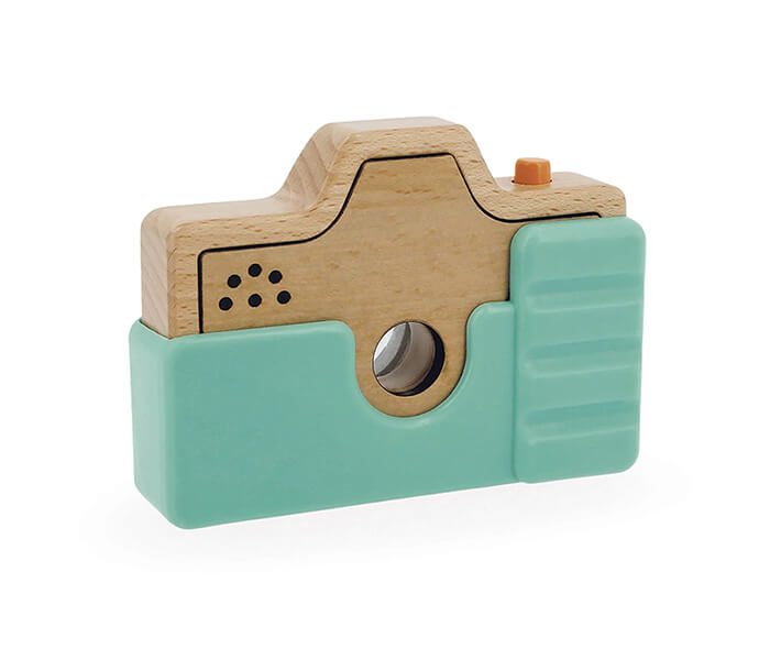 Little ones love to take great photos and it’s so easy with this wooden toy camera. This early-learning toy is full of surprises. First off, each time the shutter release button is pressed, the sound of a shot being taken can be heard, just like a real camera! This is followed by a flash and finally, little ones can use the kaleidoscope viewfinder to discover all sorts of amazing colours and shapes. It’s sure to create hours of entertainment and laughter. An added extra is that the camera is protected in a removable silicone shell, which enables little ones better grasp hols of their toy.