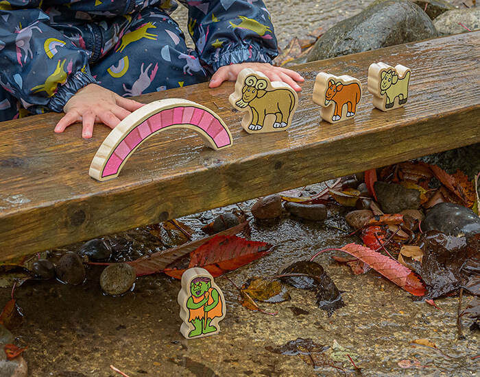 These bright and inviting wooden characters enable little ones to reenact the story of the Billy Goats Gruff in self-directed play and create new versions of their own during small world activities.
