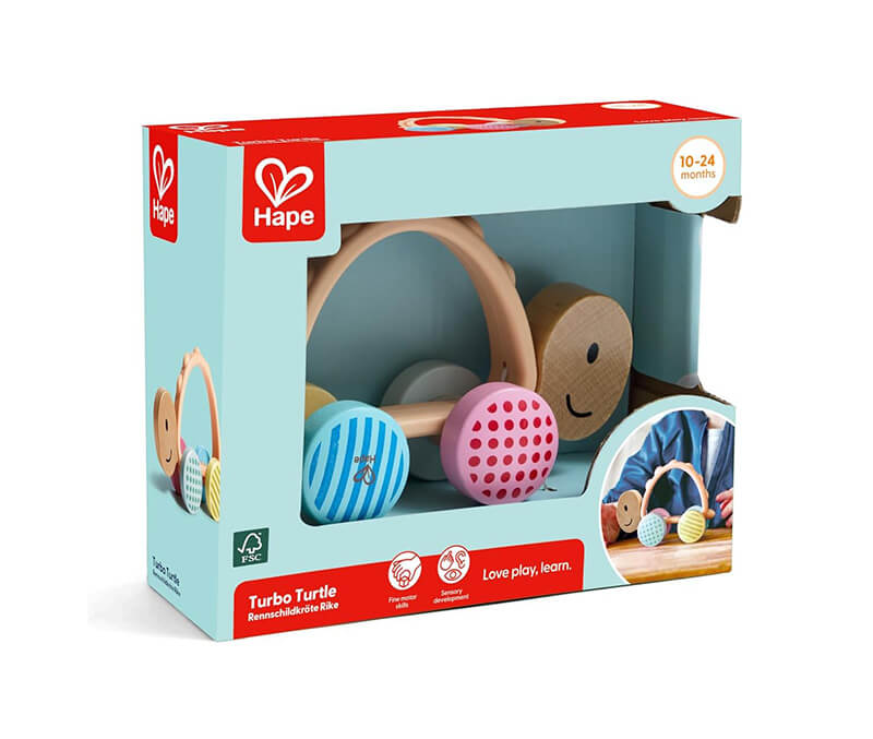 Rolling toys encourage motor skills, hand–eye coordination and sensory exploration. Why not encourage your baby to roll the Turbo Turtle back and forth, then explore the textured body for chewing and grasping, building sensory awareness and motor skills.