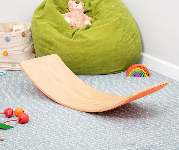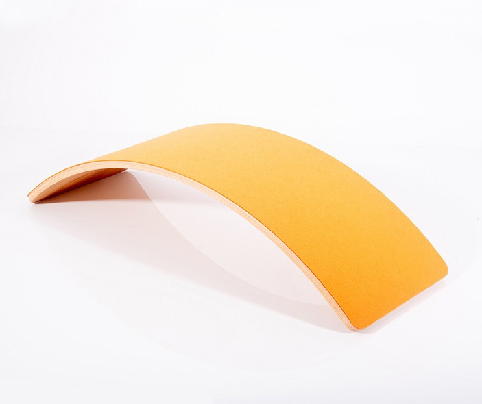 With a vibrant felt-lined underside, this smooth and study balance board provides a fun and challenging activity for all ages. Placing feet on the board, little ones will engage core muscles to develop coordination and balance as they rock the board back and forth.
