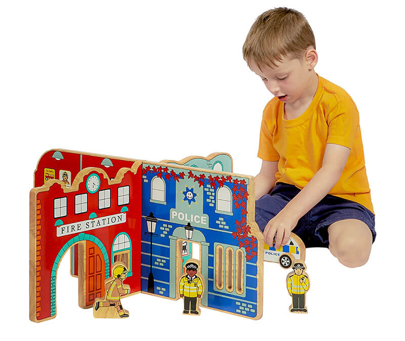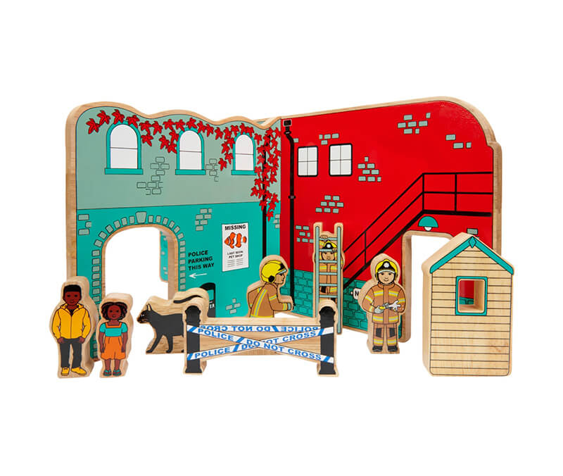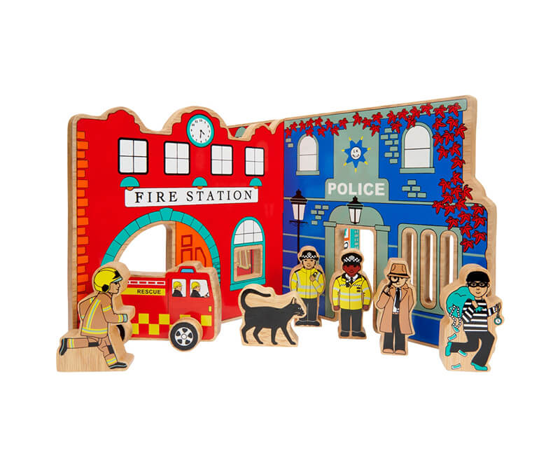 Wooden Fire and Police Toy World Playset