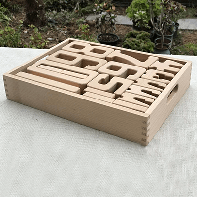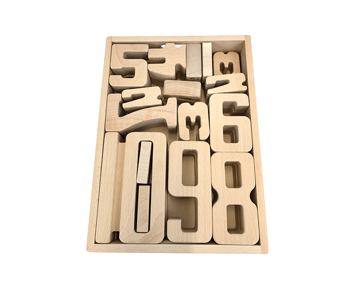 The idea is that each number is proportionally sized for the value. So lining them up will visually let them know that 1 is smaller than 2. In addition to this, if they stack 4 and 5 together it will be the same height as 9. It’s a brilliant concept. Comes in a handy wooden tray for storage.
